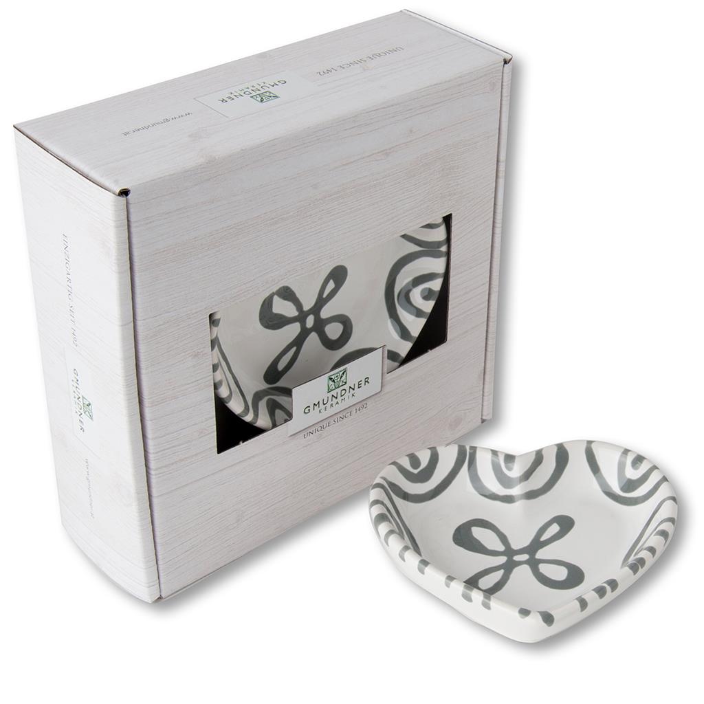 Schaaltje hart – Gevlamd grijs – 10 cm – cadeauverpakking