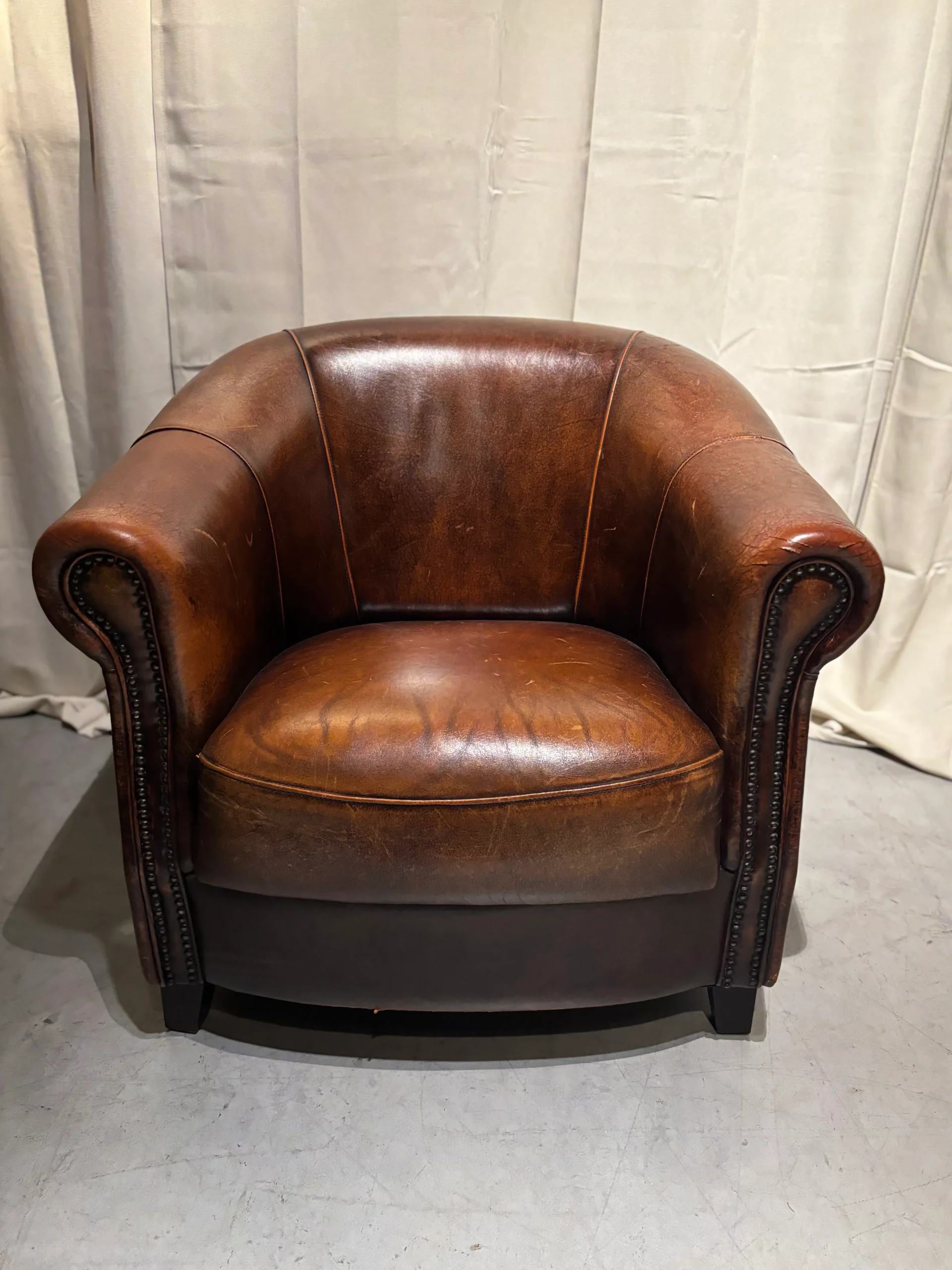 Prachtige schapenleren clubfauteuil van het merk Joris. Deze fauteuil is een echte eyecatcher in uw interieur en biedt een heerlijk zitcomfort. Het leer heeft een mooie patina en de fauteuil is in goede staat. Normale gebruikerssporen op leuning Vast zitkussen Een tijdloos design dat perfect past in een klassiek of modern interieur.