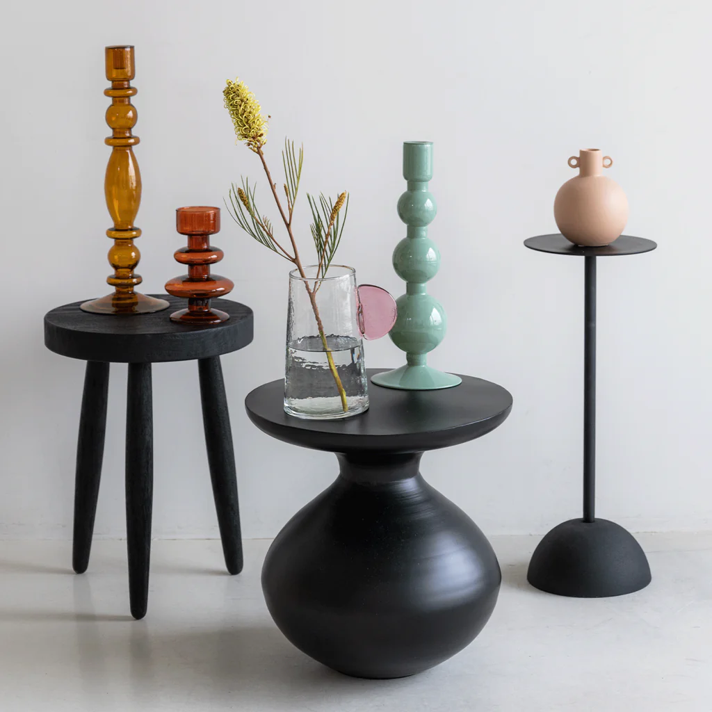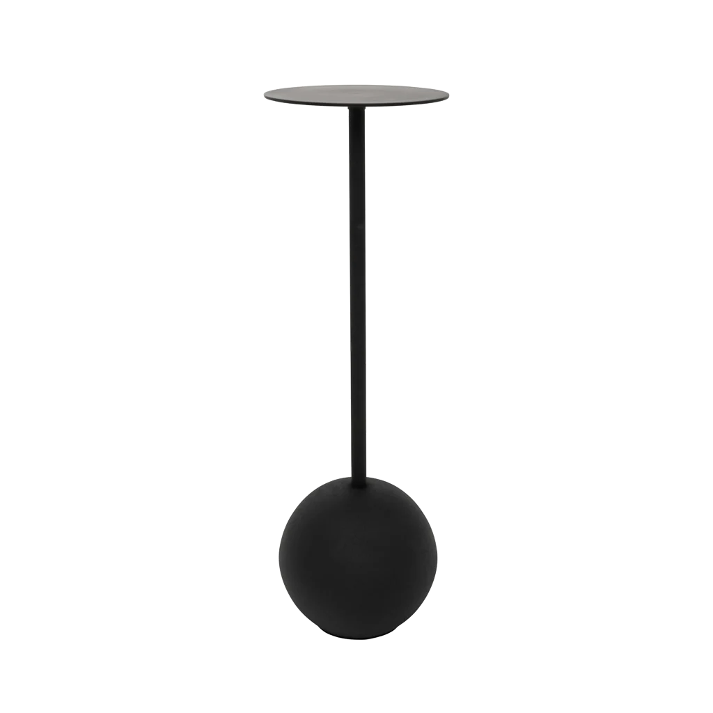 Elegancy meets minimalism, as Urban Nature Culture’s side table stands tall and proud. Handmade in India using aluminium with a beautiful black finish, it is the perfect joining of thin lines, round sensual shapes and a sober luxury feel. . Its frame is grainy, but its top is smooth and polished, a unique joining of reflectance. It has a certain softness to it, and easily pairs with other items in your interior, no matter where you place it. A sophisticated beauty, which blends in and stands out all the same.