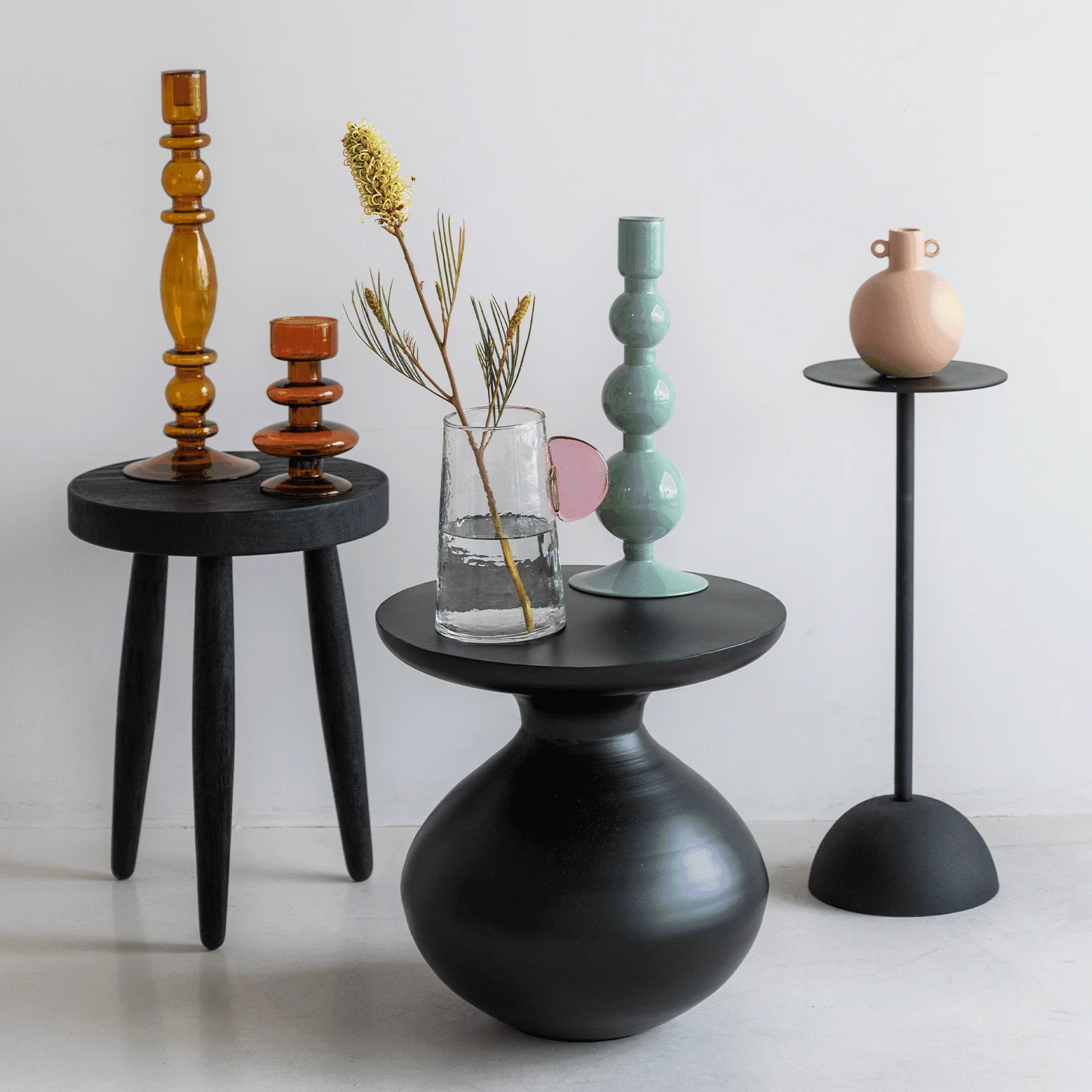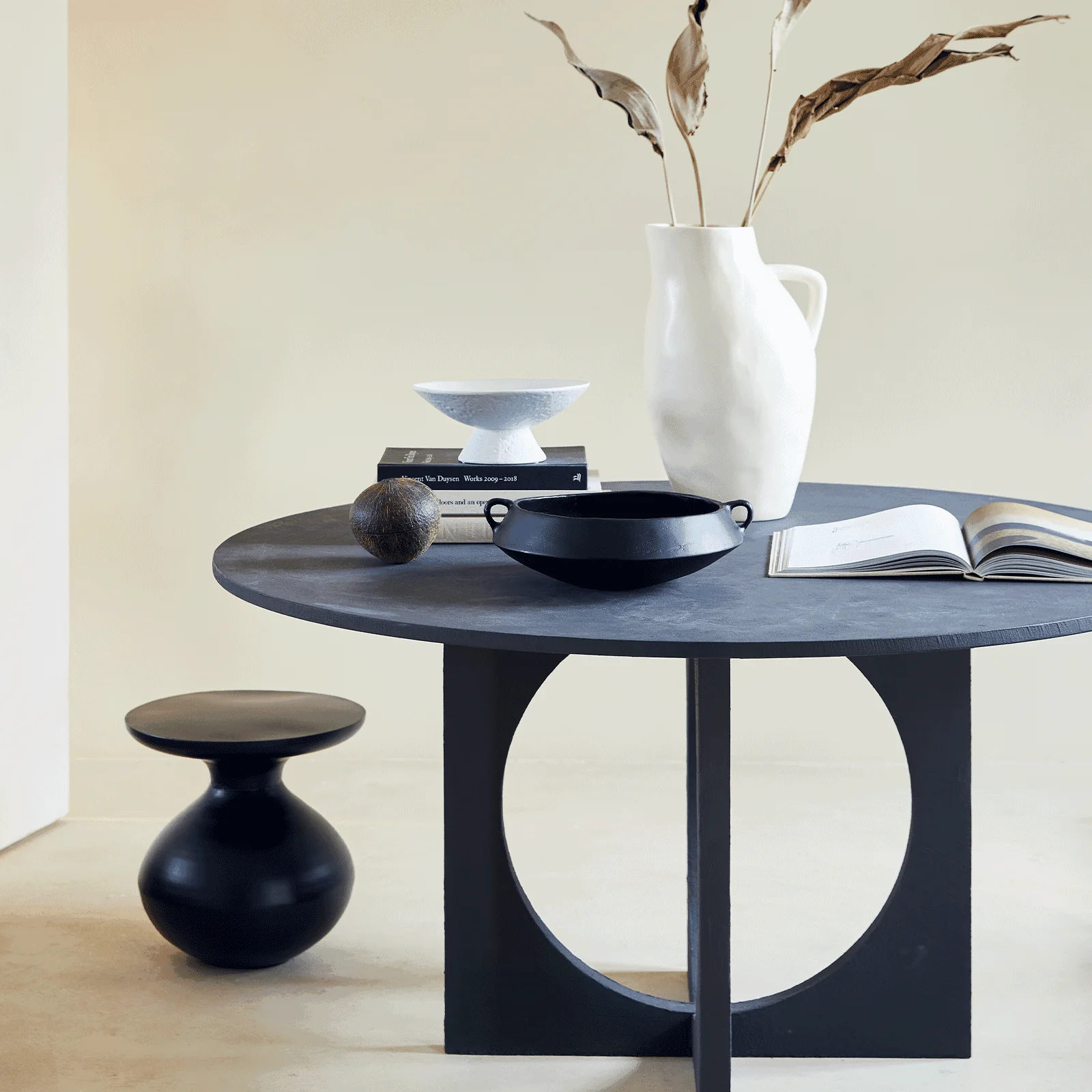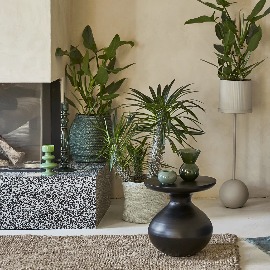 Mankind has always found inventive ways to use what nature offers. Urban Nature Culture’s side table Tummy, made of cast aluminium, is a great example of that. A special type of metal alloy, it’s been through a special casting process, to add durability and strength to the material. Handmade in India, it’s been forged into this beautiful, matt black side table. Carrying round, sensual shapes, it flows – showing a feminine character. Place it next to your favourite chair or besides the bed, and it’ll accompany you escaping the busy, roaring life outside.