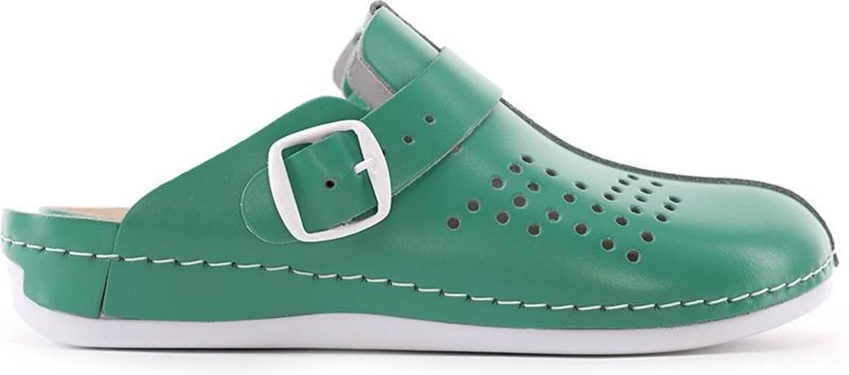 Deze klomp vormt zich aan de voet en daarmee biedt het de optimale ondersteuning aan zowel rug als benen. Deze duurzame en comfortabele klomp heeft een schacht die bestendig aan de zool is bevestigd. De ventilerende bovenzijde en de zachte, 100% lederen binnenzool met antislip maakt het lopen en staan zeer aangenaam op deze werkschoenen.
