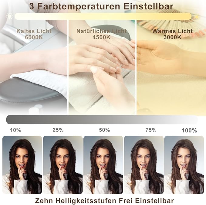 ✔ 10 helderheidsniveaus en 3 kleurtemperaturen (3000K – 6000K)