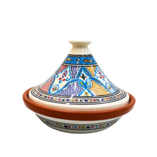 Tajine 25 cm Beschilderd Azuur – Keramische Noord-Afrikaanse Kookpot