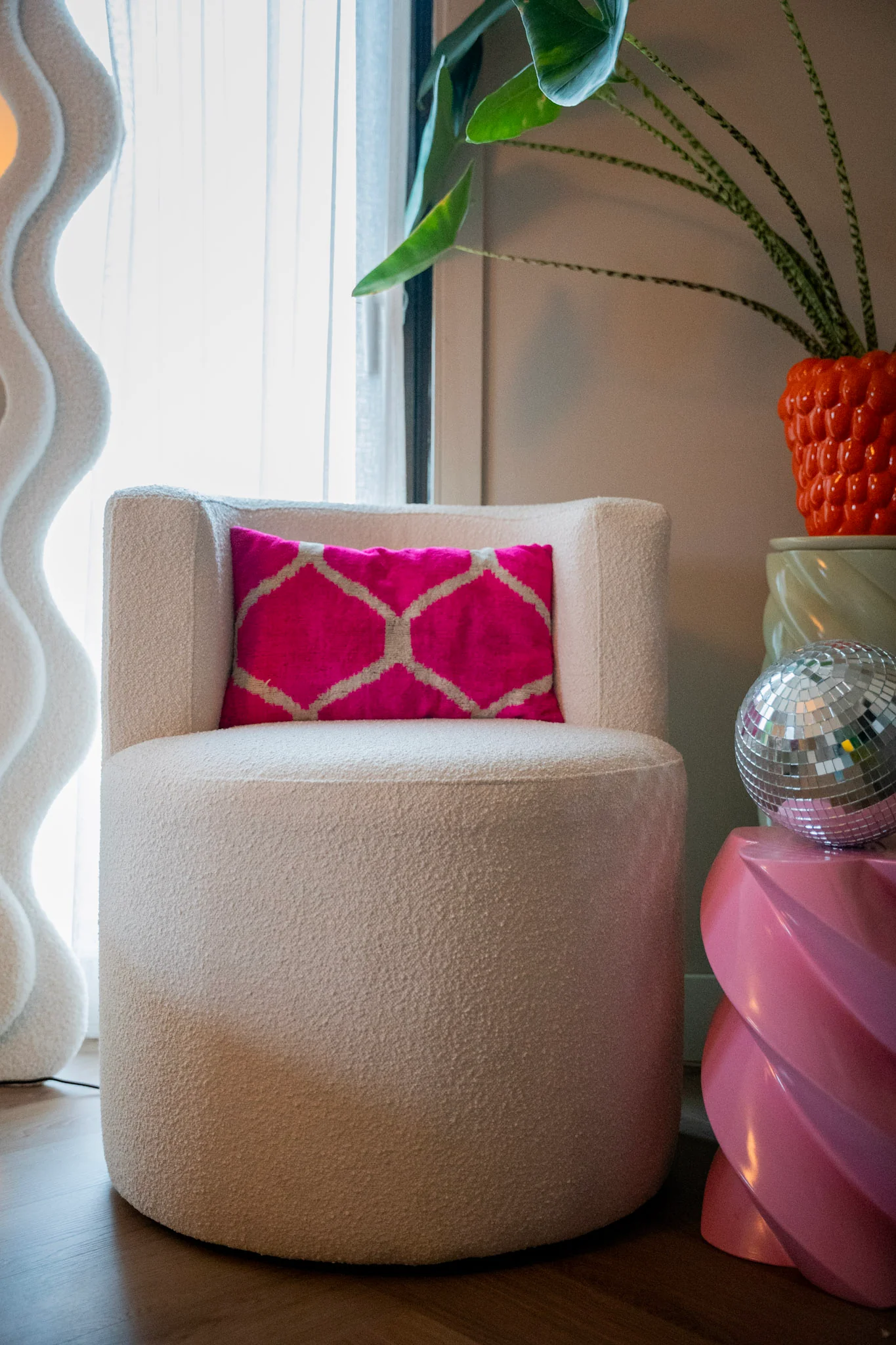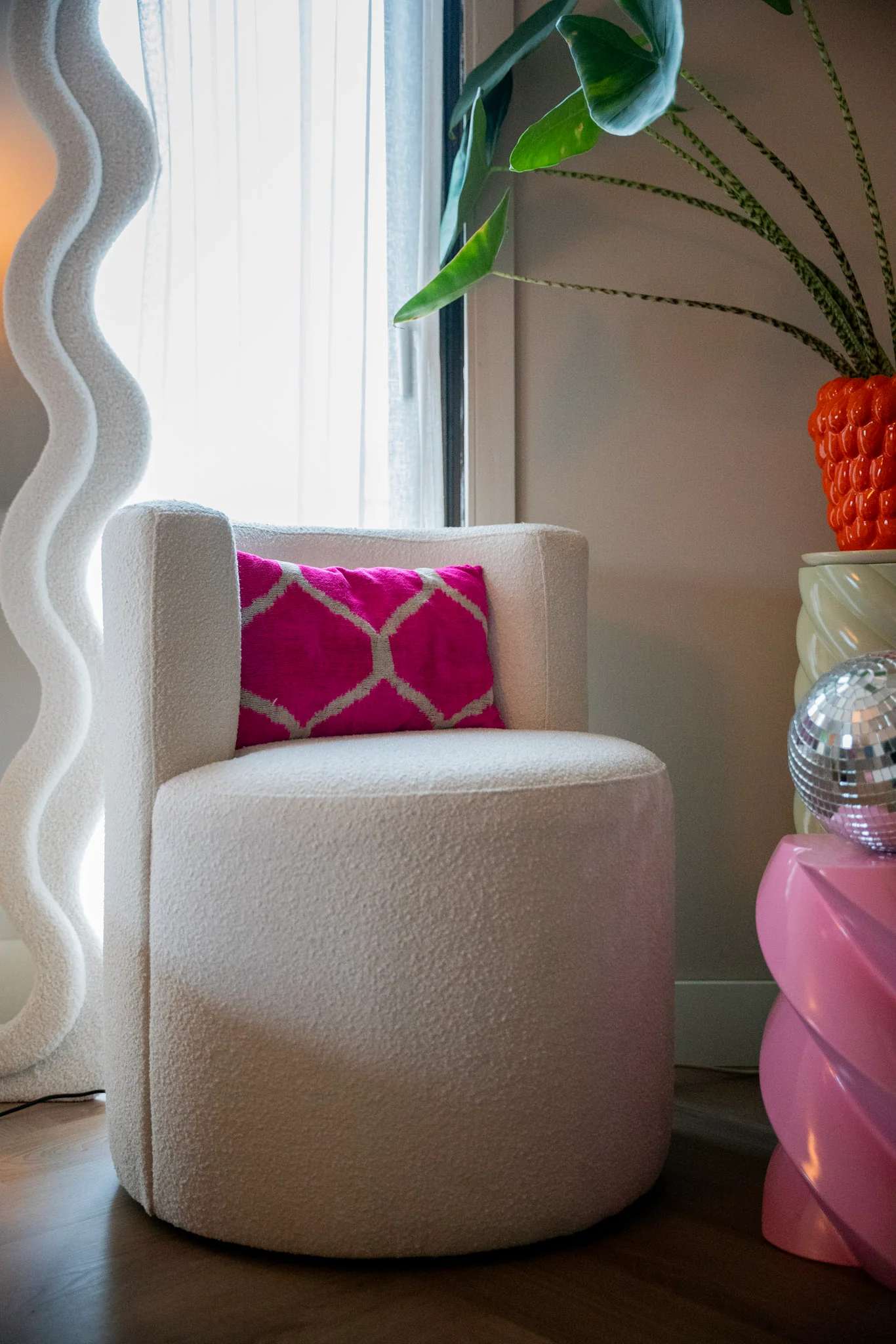 De Teddy Fauteuil Nala is de perfecte aanvulling voor elke ruimte waar comfort en stijl samenkomen. Dit kleine, compacte fauteuiltje is ideaal voor op de slaapkamer, maar past ook uitstekend aan een eettafel of bureautje. Het zachte, teddy-achtige materiaal zorgt voor een luxe uitstraling en biedt tegelijkertijd een heerlijk comfortabele zitervaring. Of je nu een gezellige leeshoek wilt creëren, je bureau wilt verfraaien of gewoon een extra zitplek nodig hebt, de Nala fauteuil is de perfecte keuze. Dankzij zijn compact formaat neemt hij weinig ruimte in beslag, maar voegt hij toch een warme en sfeervolle touch toe aan je interieur. Voeg Nala toe aan je ruimte en geniet van de stijl die het biedt!