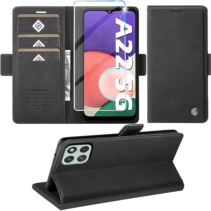 Perfect compatibel met A22 5G: de leren hoes voor Samsung A22 5G is alleen compatibel met de Samsung Galaxy A22 5G. (Twee gratis beschermfolies voor Samsung Galaxy A22 5G)