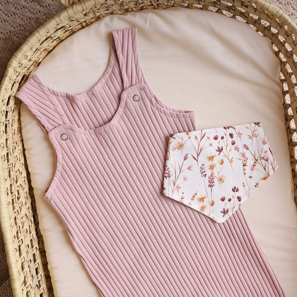 Het tuinboekje is gemaakt van een fijne en soepele katoenen brede ribstof. Het broekje heeft bandjes die over de schouders lopen met drukknoopjes.