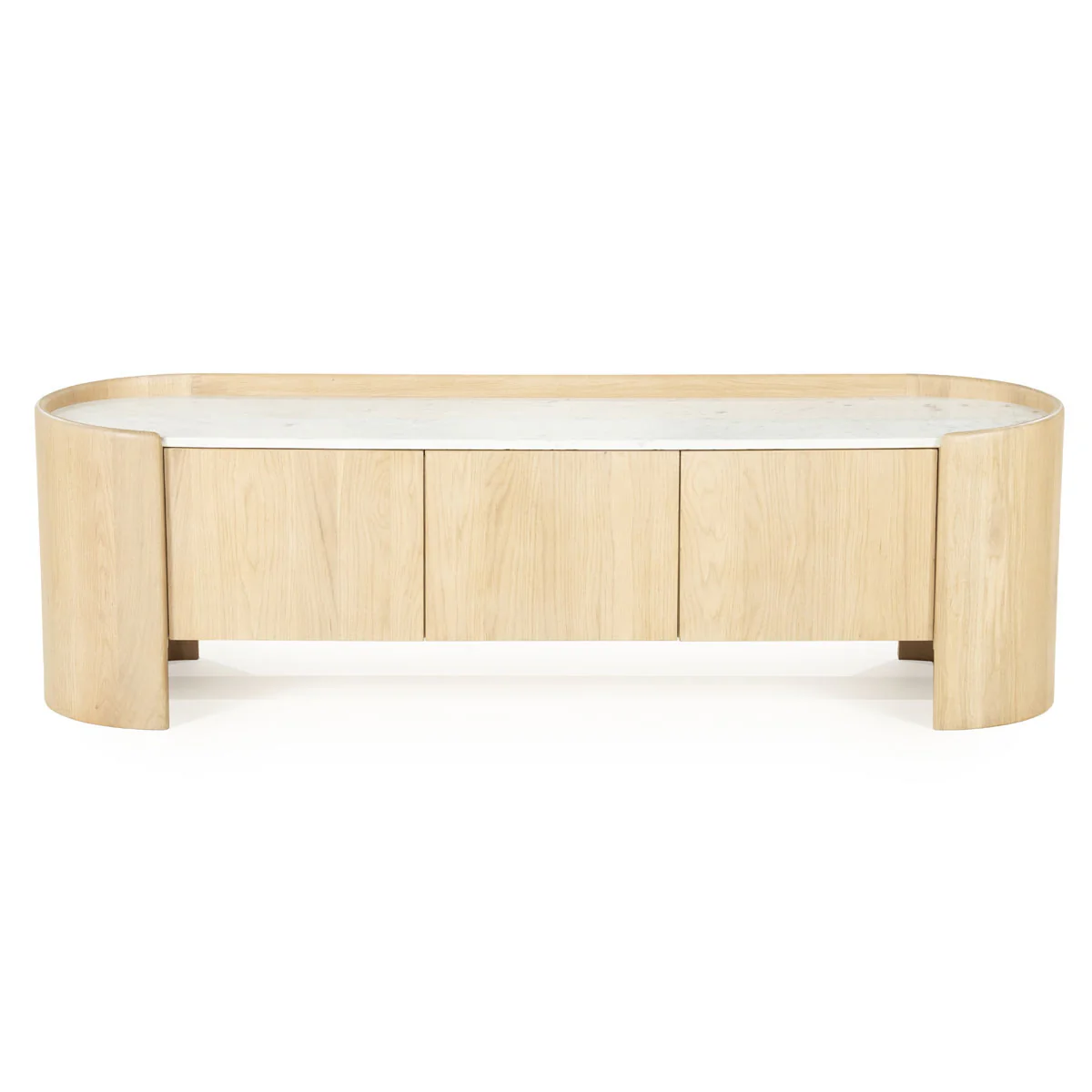 Het TV meubel Don combineert de warme uitstraling van eikenhout en eiken fineer met een stijlvol marmeren accent. De naturel kleur en gelakte afwerking zorgen voor een elegante en duurzame afwerking. Met 3 deuren biedt dit meubel praktische opbergruimte voor media-apparatuur en accessoires.