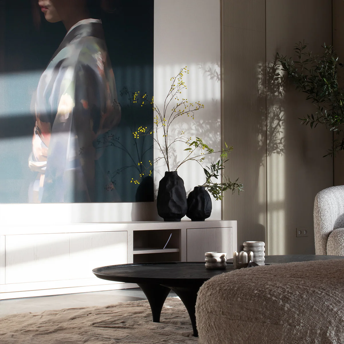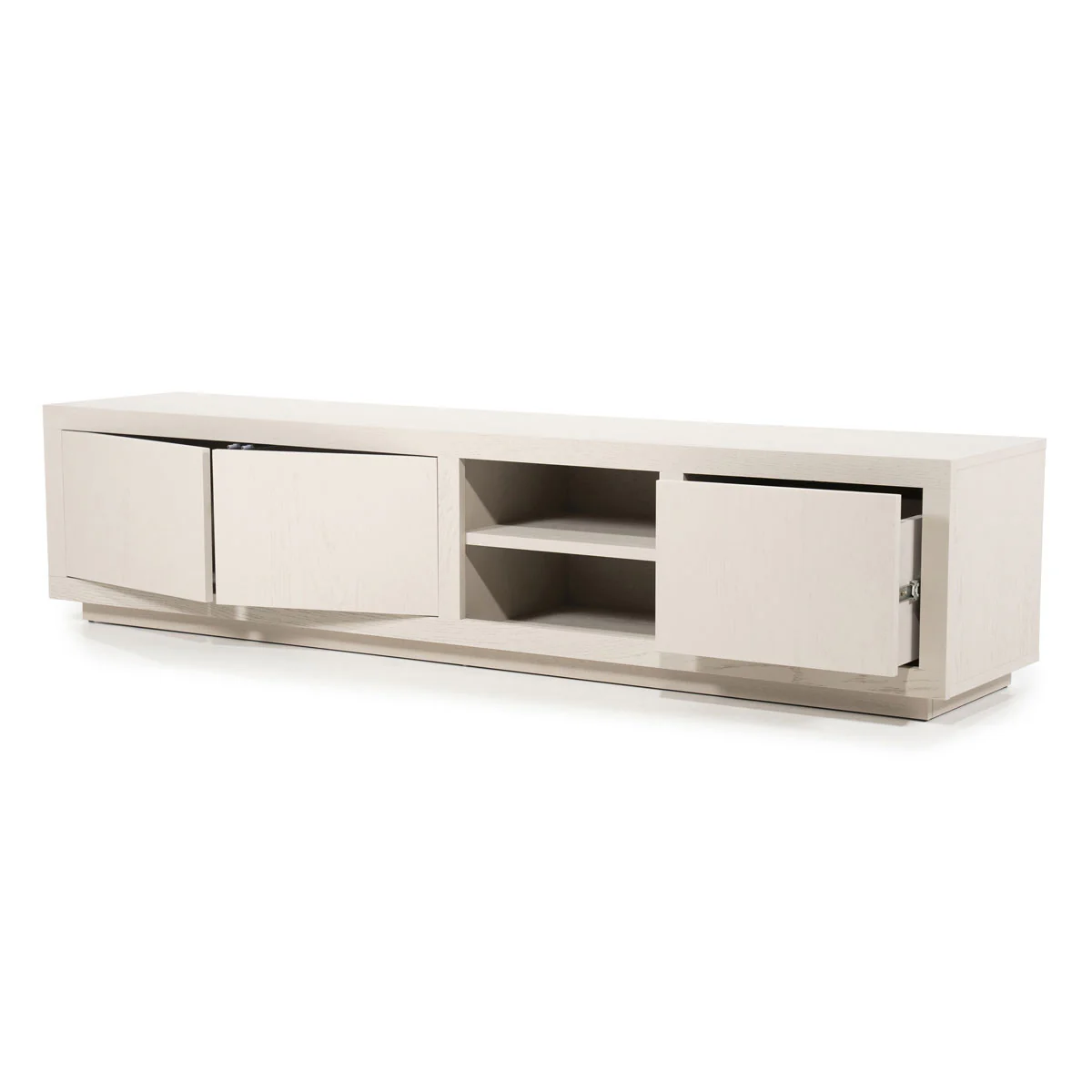 Het TV meubel Helsinki in taupe eiken en eiken fineer combineert een modern design met praktische opbergruimte. De gecoate afwerking zorgt voor extra bescherming en een stijlvolle, matte uitstraling. Met 2 deuren en 1 lade houd je eenvoudig al je media-accessoires.
