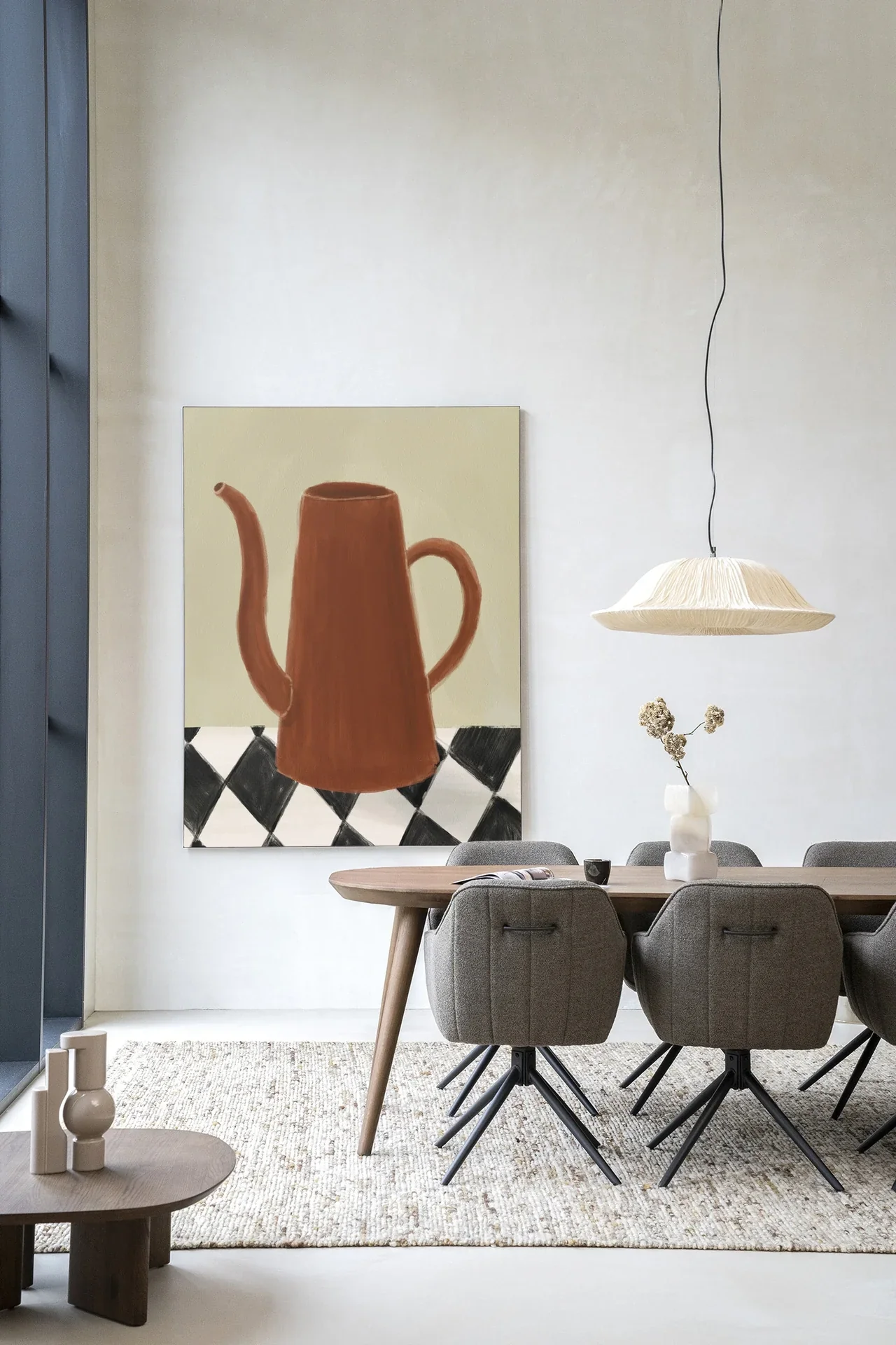 De wandkleden stel je samen met een roede of een frame. Een roede heeft een nonchalante uitstraling doordat het wandkleed er losjes aan hangt. Een wandkleed in frame heeft een strakke en simplistische uitstraling doordat het wandkleed strak in het slanke frame valt. Wandkleden zijn ook los te bestellen. Zo kun je gemakkelijk van kunstwerk wisselen.