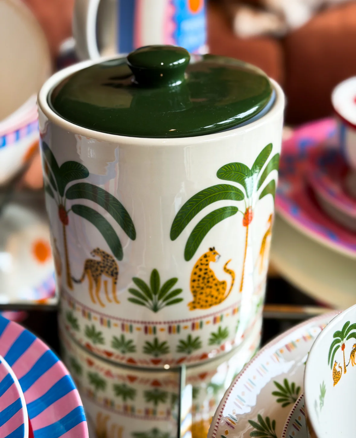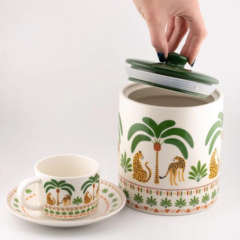 Breng stijl en orde in je keuken met deze prachtige voorraadpotten, verkrijgbaar in tropisch palm- of stoer pantermotief. Perfect voor het bewaren van koffie, thee, suiker, snacks of andere lekkernijen!
