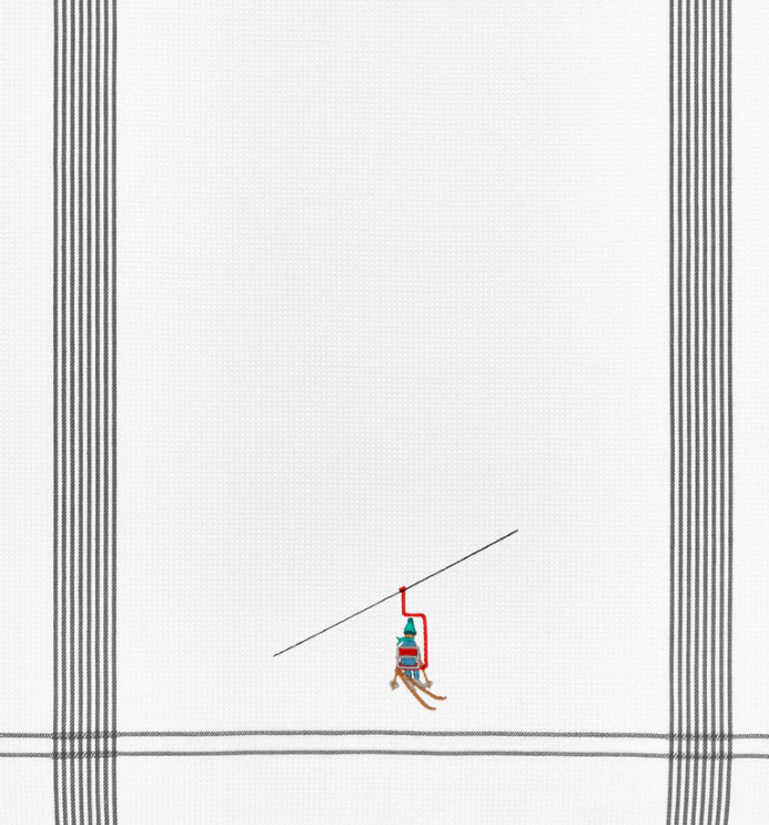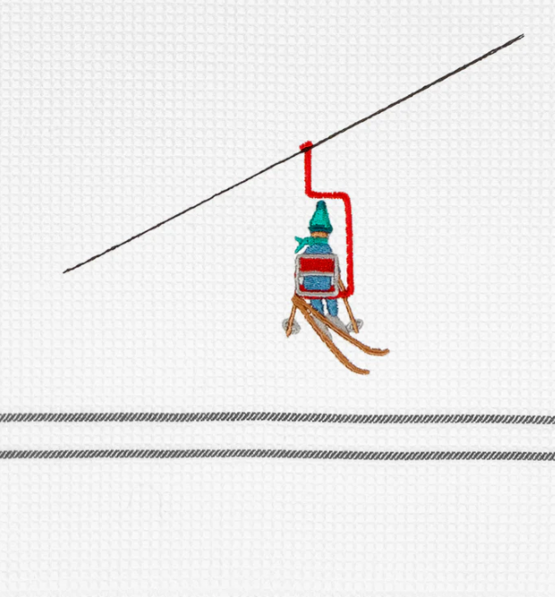 Het ontwerp is van de Oostenrijkse ontwerpster Barbara Schmid uit Kitzbühel, bekend om haar sfeervolle berg- en wintersportillustraties. De stoeltjeslift is zorgvuldig op de theedoek geborduurd, waardoor hij een authentieke en tijdloze uitstraling krijgt.