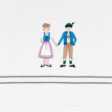 Het ontwerp is van de Oostenrijkse ontwerpster Barbara Schmid uit Kitzbühel, bekend om haar sfeervolle berg- en folklore-illustraties. Het trachtenpaar is zorgvuldig op de theedoek geborduurd en geeft een warm, authentiek accent aan je keuken.