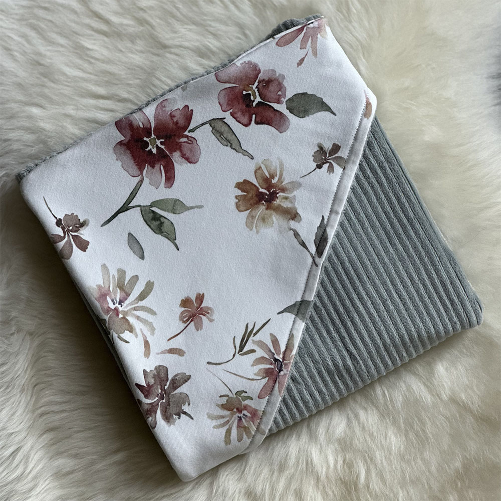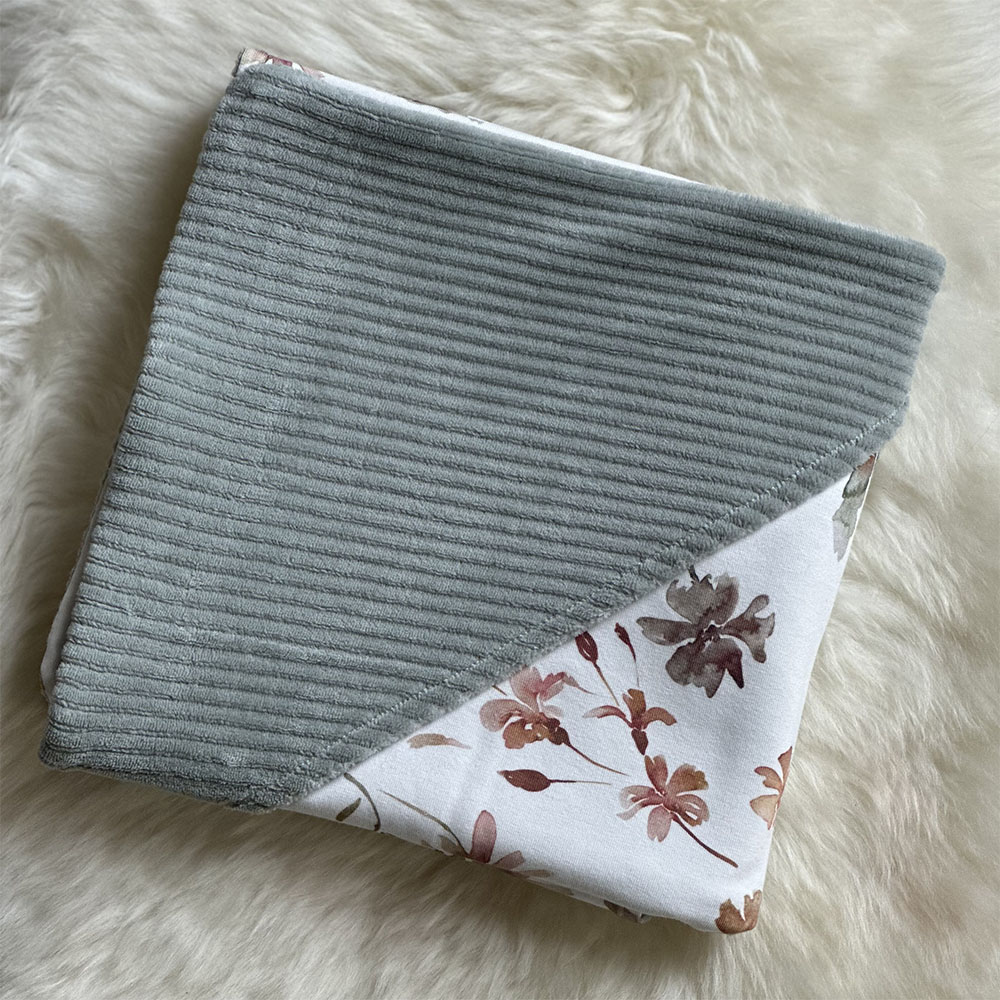 Deze wikkeldoek bestaat uit twee stoffen: een zachte velours ribstof en een katoenen stof met print. Deze wikkeldoek is daardoor aan twee kanten te gebruiken. Je kunt dus zelf bepalen welke stof je het mooiste vindt aan de binnen- of buitenkant.