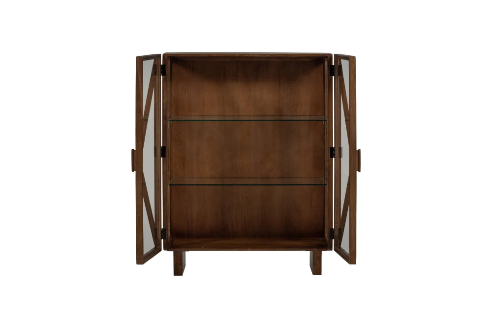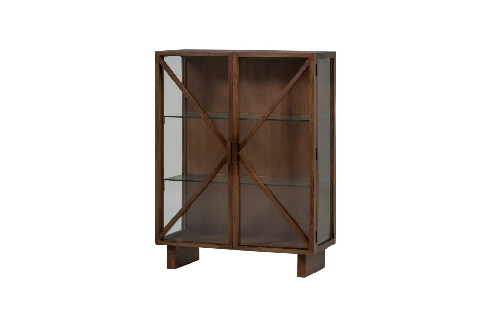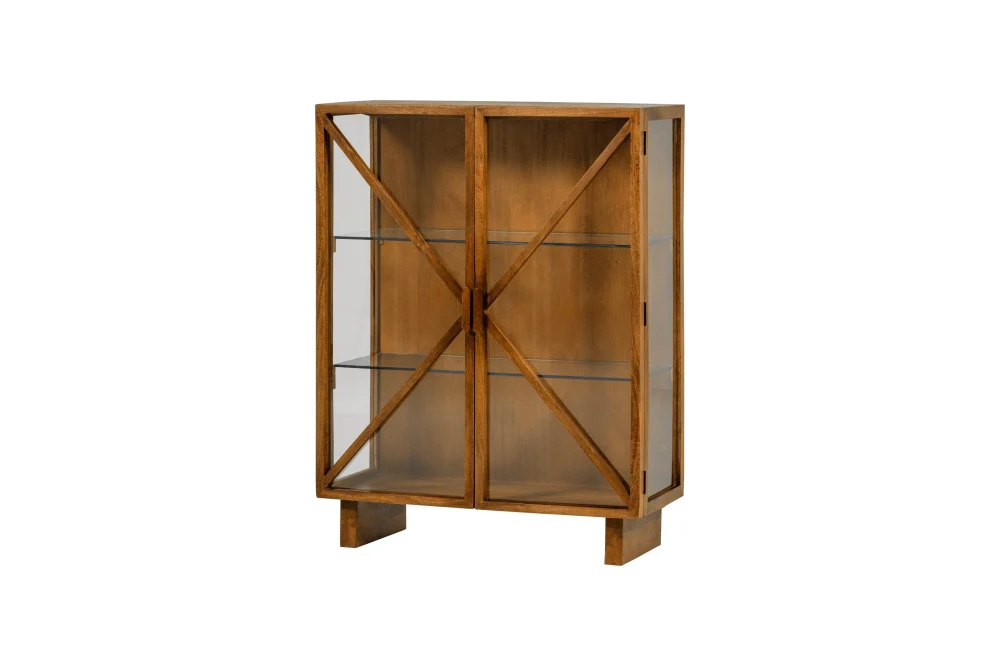 Woood Kella 2-Deurs Virtinekast: een elegante vitrinekast met glas, gemaakt van mangohout met een stijlvol design